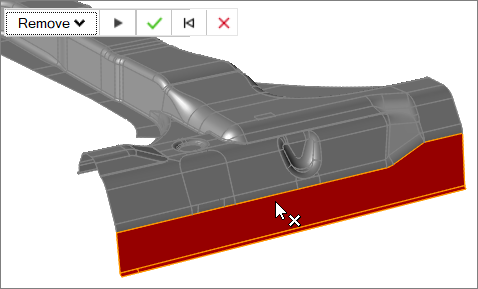 Use the Remove tool to remove surfaces from a part.