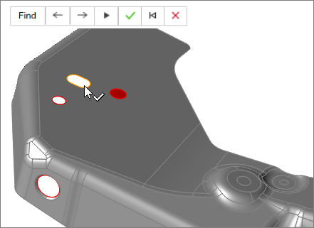 to find and highlight edge fillets on the part in red. Use the arrows to