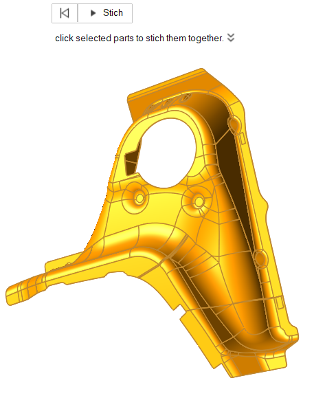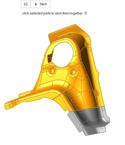 - Repeat Steps 3 and 4 until all of the gaps are filled and the part is stitched together into a whole, complete surface.