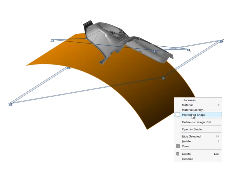 Use the Preformed Shape option to apply a user-defined blank shape in the model in place of the default, flat blank shape.