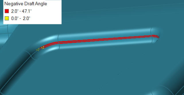 Tip: Use the legend to monitor the undercut draft angle. Avoid orientations of the model with many red areas. Yellow areas have a passable draft angle.