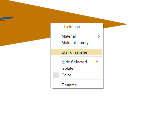Note: For a tailor-welded blank consisting of multiple parts, you must right-click on the blank to reveal the context menu and select Blank Transfer to define each transfer.