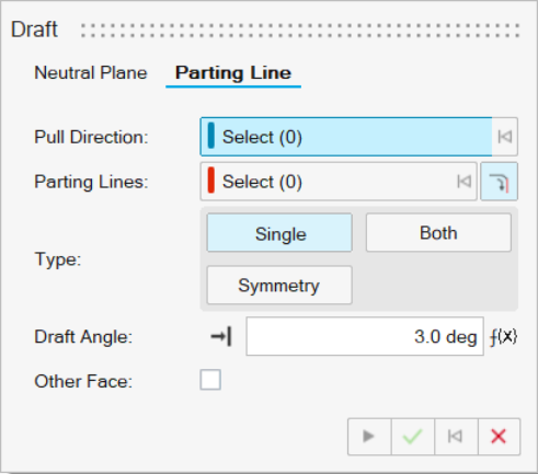 - Single (default): Create the draft on one side of the parting line.
