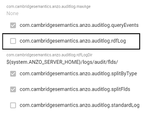 - Find the com.cambridgesemantics.anzo.auditlog.rdfLog property (shown below).