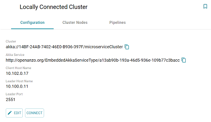 The cluster is now connected to Graph Studio and ready to process unstructured pipelines. If you return to the Unstructured Clusters screen, the status of the cluster is now Connected and the number of Akka Nodes is displayed. For example: