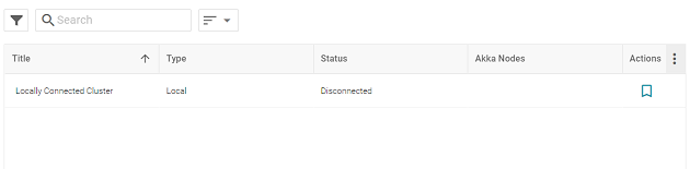 - In the Administration application, expand the Connections menu and click Unstructured Clusters. The Unstructured Clusters screen lists the available clusters. For example, the image below shows a cluster that was just installed. Note that the Status is Disconnected: