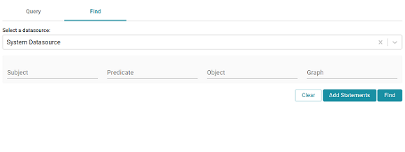 2. Next, open the Find tab in the Query Builder. In the Graph Studio application, expand the Access menu and click Query Builder. Then click the Find tab. The Find screen opens and the System Datasource is selected as the target data source.