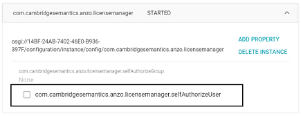 Find the com.cambridgesemantics.anzo.licensemanager.selfAuthorizeUser property (shown below).