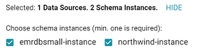 If the selected data source includes more than one schema, the number of schema instances is shown at the top of the screen. For example:
