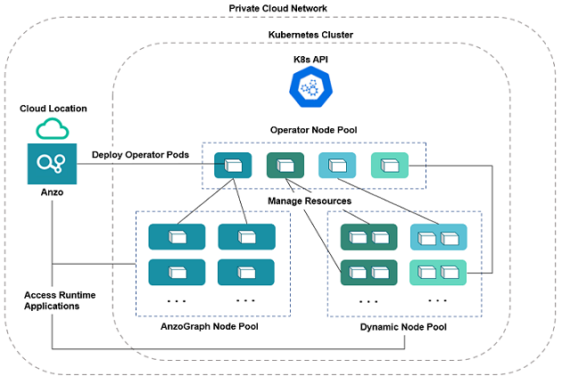 The diagram below shows the K8s cluster architecture with the required node pools.