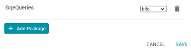 4. Click the Select field and type GqeQueries. Then press Enter to add GqeQueries to the list of Log Packages. The package is added to the list with the default Log Level of Off.