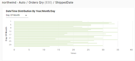 - DateTime Distribution By Year/Month/Day: For dateTime properties, computes a histogram that shows the distribution of values by year, month, and day.