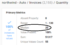 For each numeric property, this metric computes the median of all values.