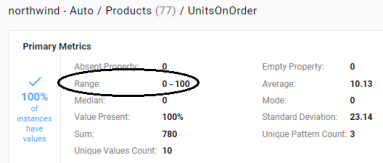 - Range: For numeric properties, reports the total range of values.