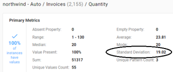 For each numeric property, this metric computes the standard deviation of all values.