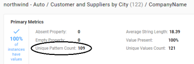 For each property, this metric counts the total number of unique value patterns.