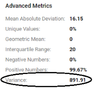 For each numeric property, this metric computes the variance of all values.