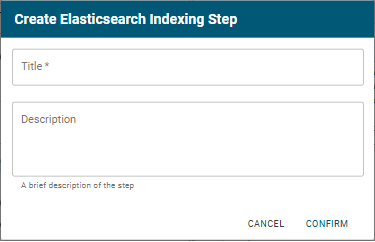 To create a new Elasticsearch Indexing step, select Elasticsearch Indexing Step and then click OK. If you want to clone an existing step, click the Existing Steps tab, select the step that you want to clone, and then click OK. The Create View dialog opens.