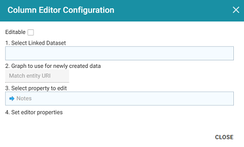 7. Click OK to save the LDS configuration and create the LDS. The LDS is added to the Datasets catalog and it is shown on the Column Editor Configuration screen. Additional editor properties are made available on the screen. For example: