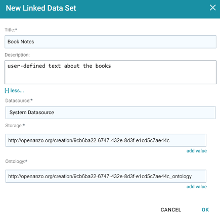 5. Specify a title for the new LDS and add an optional description. Then click the [+] more link to expose the following additional settings.