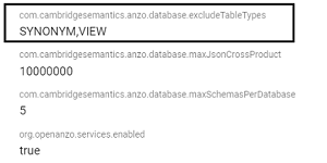 4. Locate the com.cambridgesemantics.anzo.database.excludeTableTypes property (shown in the image below).
