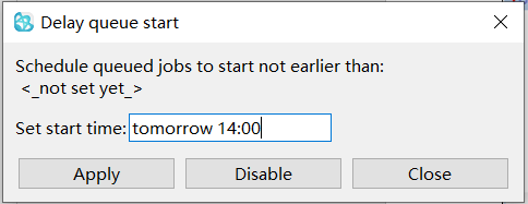 you can schedule when all submitted jobs will start. Setting this delay will not
