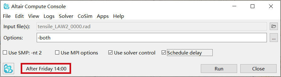 The Schedule delay option on the main Compute Console form opens a small window where