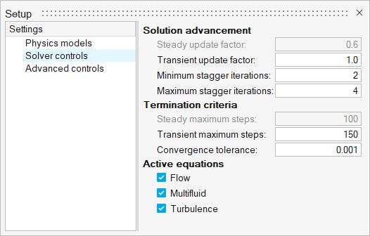 - The Flow, Multifluid, and Turbulence checkboxes are activated.