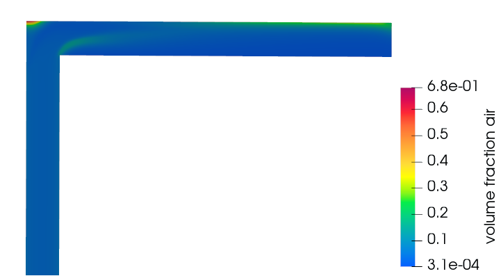 The volume fraction of air contours are displayed on the model.Figure 24.