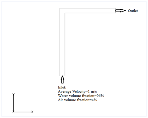 In this problem, Water is considered a Carrier field material and Air is considered as Dispersed field material. Fluid enters the Inlet at an Average Velocity of 1 m/sec and the Water and Air volume fractions at the inlet are 96% and 4% respectively.
