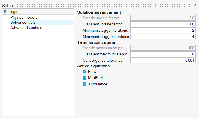 The Setup dialog opens. - Under the Physics models setting, select the Multiphase flow radio button.