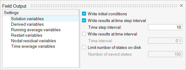 The Field Output dialog opens. - Check the box for Write Initial Conditions.