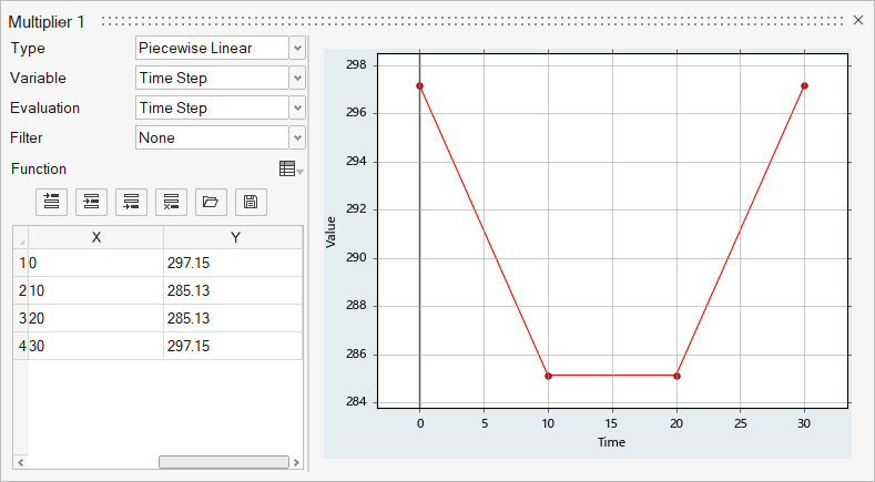 - In the multiplier dialog, set the Type to Piecewise Linear.