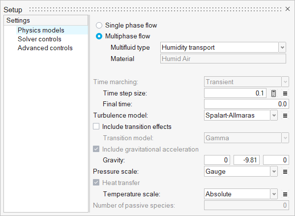 - Set the Multifluid type to Humidity transport.