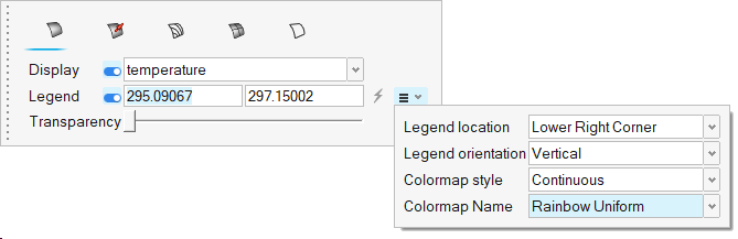 - In the display properties microdialog, set the display to temperature.