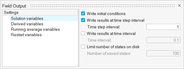 The Field Output dialog opens. - Check the Write initial conditions checkbox.