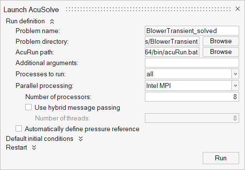 Tip: While AcuSolve is running, right-click the AcuSolve job in the Run Status dialog and select View Log File to monitor the solution process.