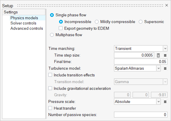 - Set the Time step size to 0.0005 and the Final time to 0.05.