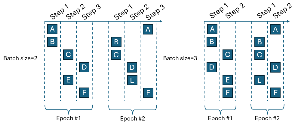 each epoch, the data is randomly shuffled into steps. Figure 1 illustrates a training