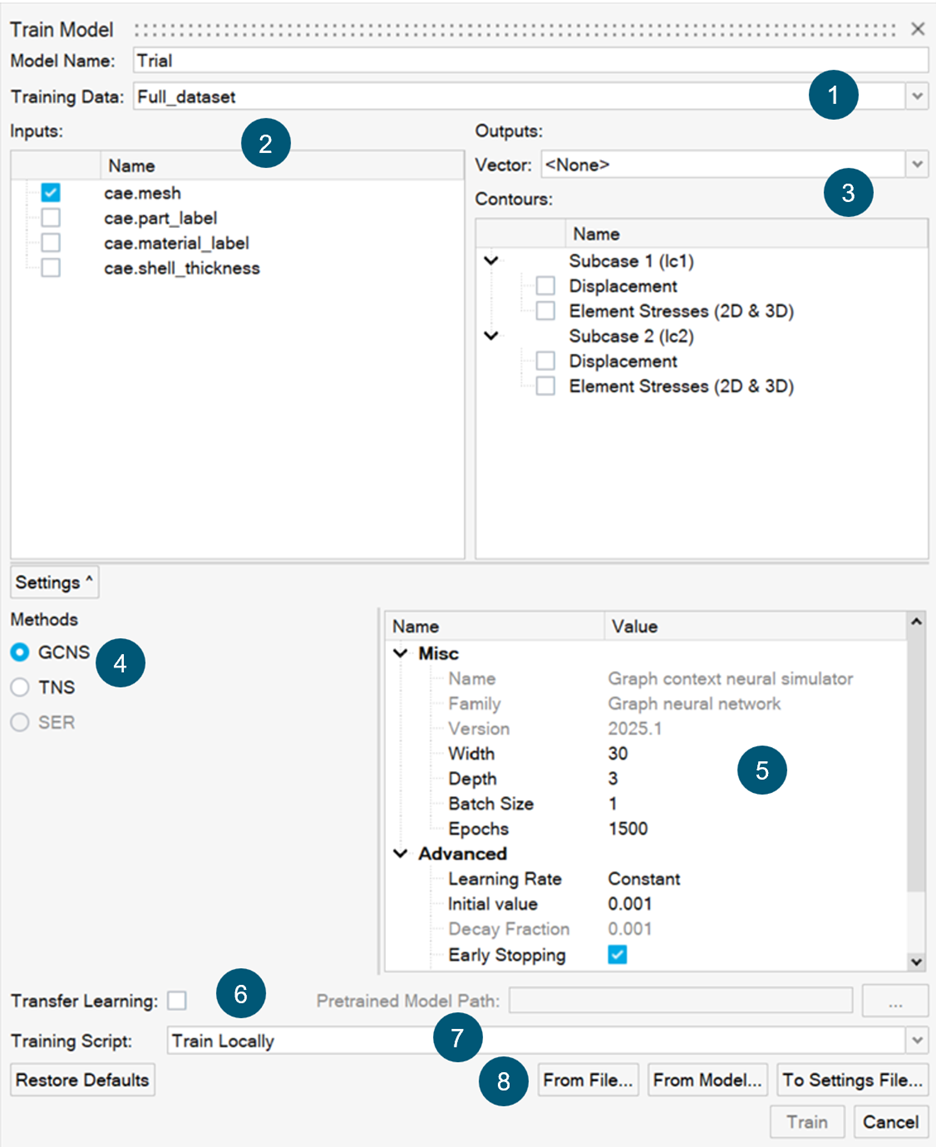 The Train Model dialog opens. See Navigate the Train Model GUI for