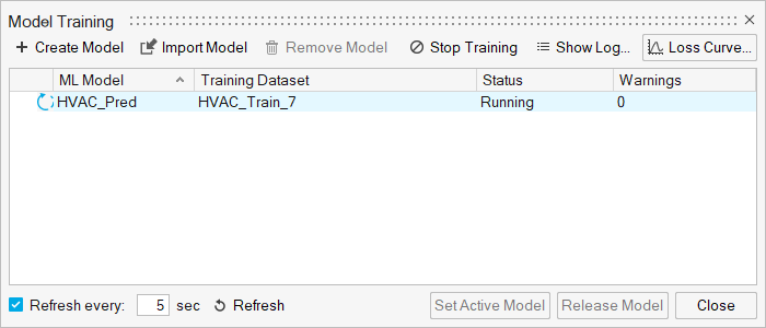 The Model Training dialog