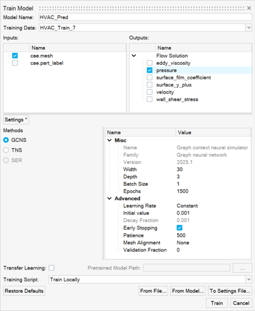 From the PhysicsAI ribbon, select the Train