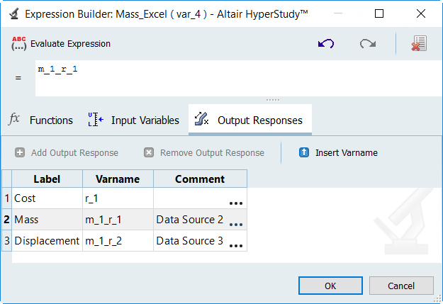 Variables/Output Responses tab.