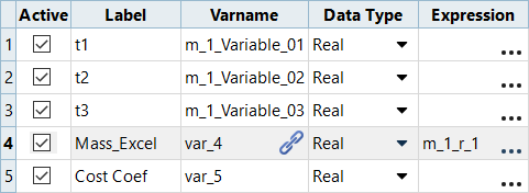 - Select the input variable/output response to which the input variable will be linked.