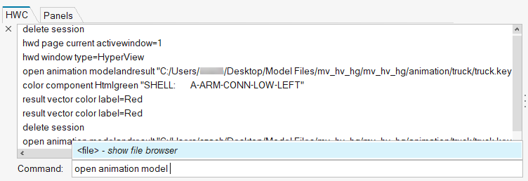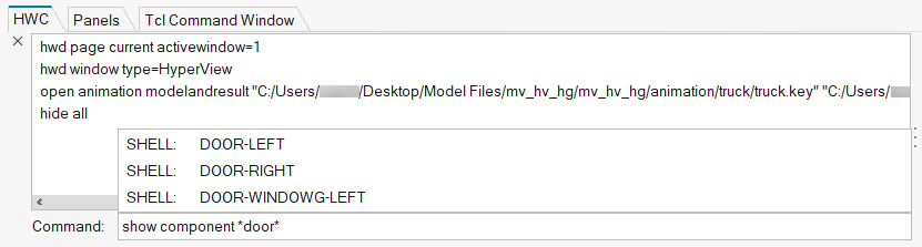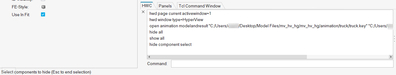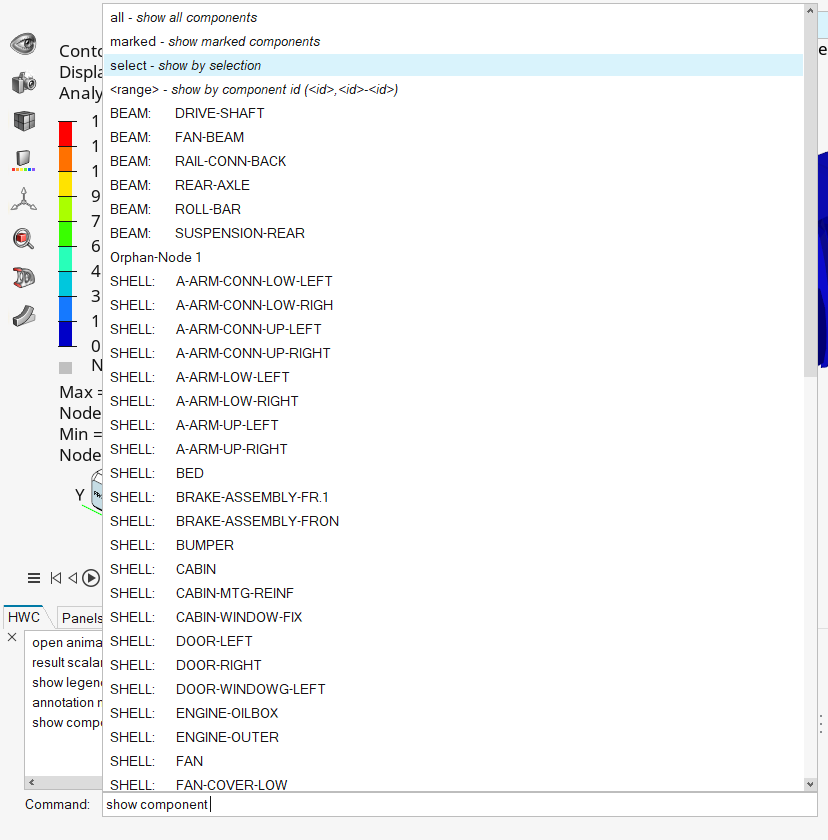 lower left corner, displays the current state of the interactive selection:Figure 4. Interactive Selection in HWC Commands
