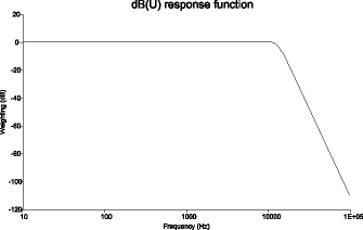 The dbu function returns the U-weighted frequency curve for the input curve. The U-weighting dampens the ultra-sonic components of the input curve.
