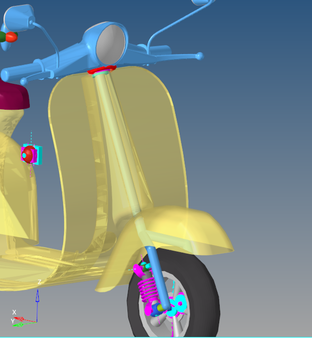 vehicle models of a two wheeler. The default geometry and mass approximate that of a two