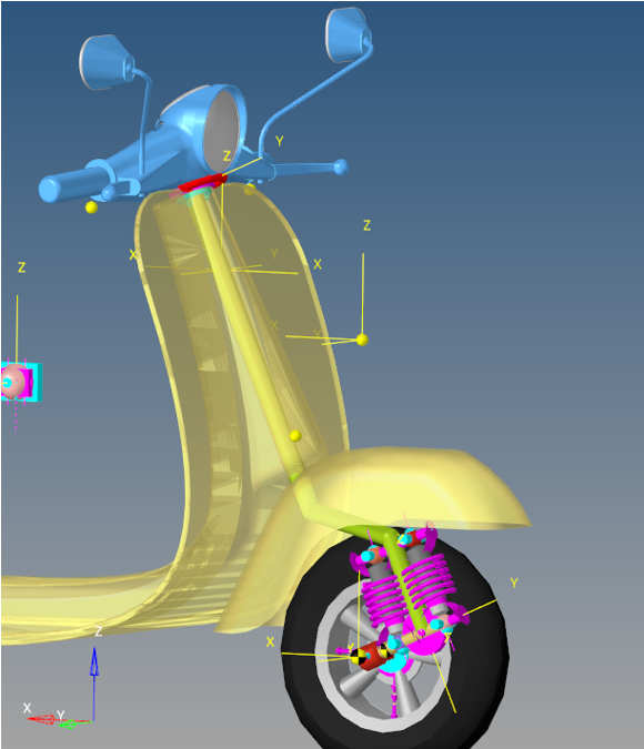 vehicle models of a two wheeler. The default geometry and mass approximate that of a two