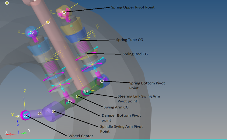 populated front suspension model. The Single Side Trailing Link Suspension system has two