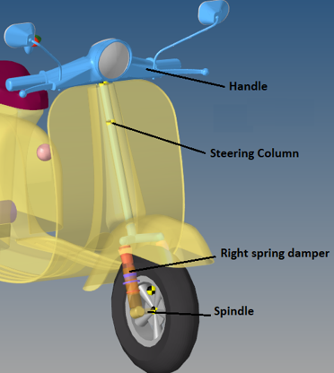 The table below describes the bodies, bushings, and joints for the Front Telescopic Fork